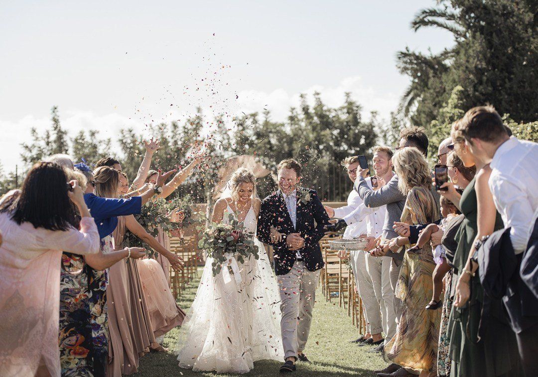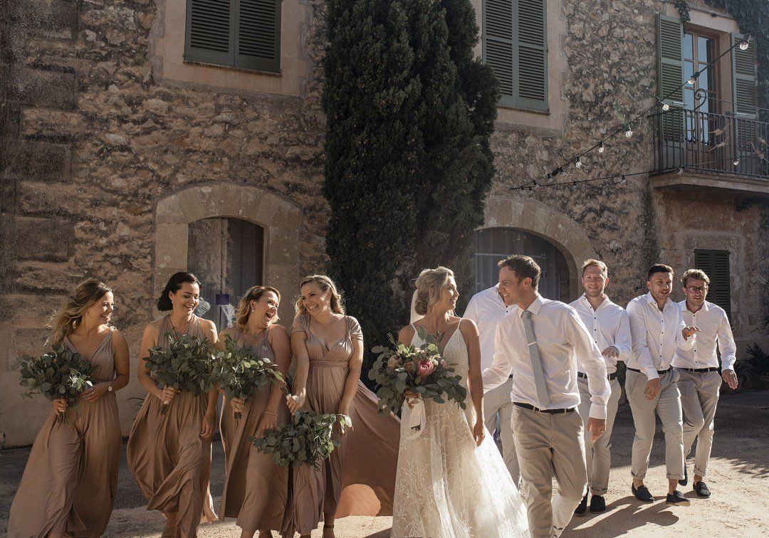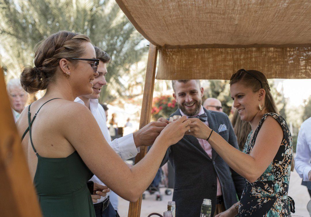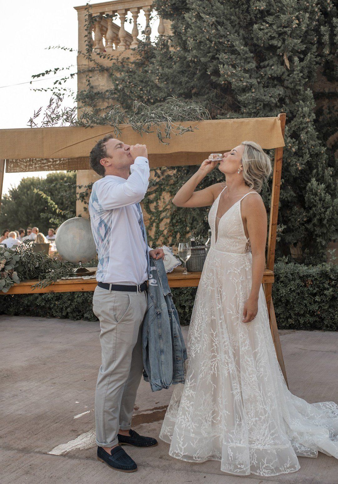 Alison & Rohan got married at one of our favourite venues in the world, gorgeous Finca son mir, in Mallorca. We met for the first time the day before the wedding, and we got along from the start. Alison is from Australia, and Rohan from UK, and they met in Mallorca a few years ago. Their wedding was a fun, bohemian, relaxed wedding, and that was a perfect match with us and our vision! Well, you know the wedding is gonna be lots of fun when the seatingboard are a wall of shots.